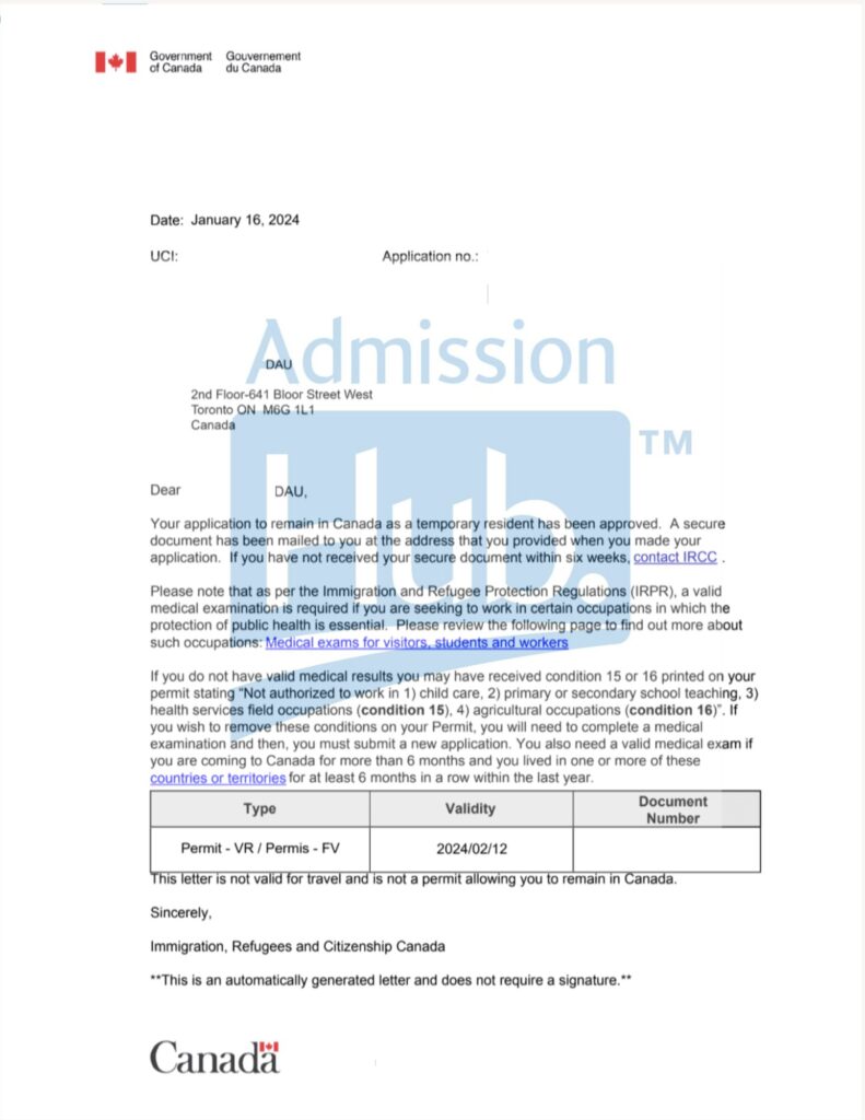 Nhờ sự nỗ lực của cả hai bên, hồ sơ Visitor Extension của chị Hà đã được nộp lại thành công. Sau một tháng chờ đợi đầy hồi hộp, chị Hà khi nhận được thông báo đậu visa du học vào ngày 16/01/2024 với thời hạn đến ngày 12/02/2024.